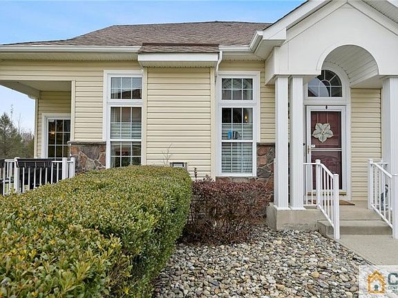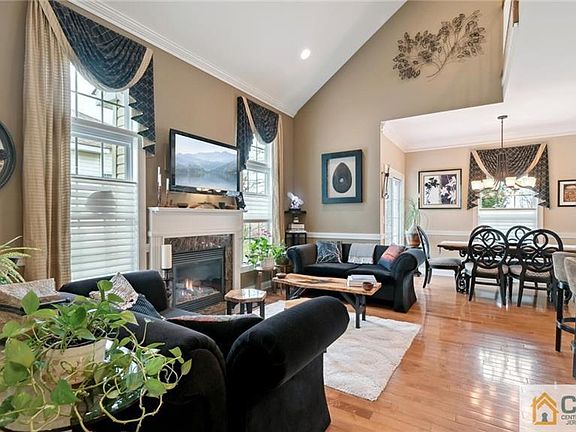 Unpack and move in to this beautifully customized, contemporary 3 bedroom, 2 bath, Ashbury model on a private lot, in the desirable 55+ community at The Pointe at Turnbury! The home features a one-of-a-kind, custom kitchen, which opens to the two story, light-filled living and dining rooms. Completely redesigned and upgraded, the eat-in kitchen boasts custom, soft-close, cherry cabinetry, topped with beautiful granite countertops, including a unique, built-in breakfast bar and two-tiered counter, connecting to the living room. Upgraded, maple hardwood flooring flows thru the kitchen and living and dining areas on the first floor, providing a warm balance to the dramatic, marble-trimmed gas fireplace and floor-to-ceiling windows, topped with custom window treatments. The primary bedroom, also on the main level, boasts a walk-in-closet, ceiling fan and renovated en suite bath, with custom tile, granite countertop and over-sized, frameless, walk-in shower. A convenient laundry closet and powder room complete the 1st floor. Custom moldings line the open staircase to the second floor, featuring a loft overlooking the living room, great for additional recreation or office space, as well as two bedrooms, one of which features a gorgeous built-in window seat & bookcases and ensuite, Jack & Jill full bath - perfect for family (19+ yrs) or overnight guests. A neutral palette, additional ceiling fans, custom window treatments & moldings, as well as recessed lighting, are found throughout this well-appointed home. A finished basement offers additional living space, including recreation, custom kitchenette and storage/workshop areas, and the 2-car, attached, garage complete the package! You'll enjoy the maintenance-free lifestyle and amenities that The Pointe offers, including a clubhouse, fitness center and outdoor pool. Close to local shopping, transportation, houses of worship and more! Don't miss the 3D tour!