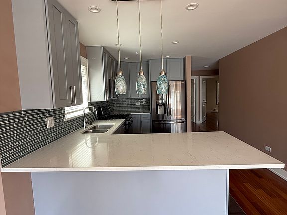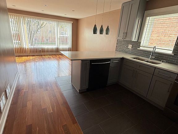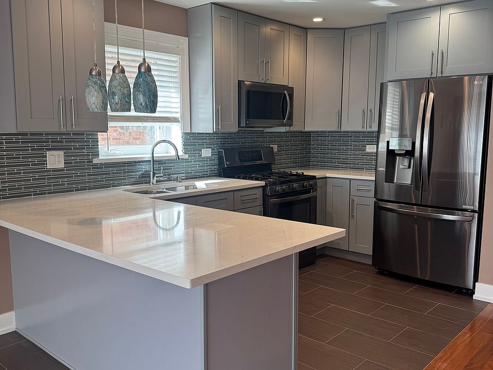 Lots of natural lightQuartz countertopsBlack stainless steel appliances
