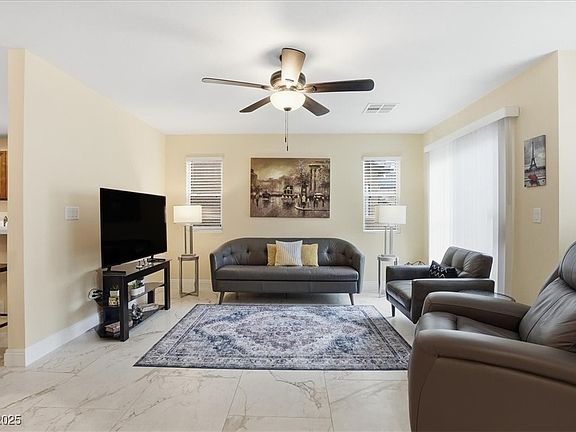 In the heart of Las Vegas, this gated-community home was completely renovated inside and out in 2024. Featuring modern luxury vinyl plank flooring, marble-look tile, fresh paint, and brand-new cabinets with quartz countertops, the residence blends style with comfort. Contemporary fixtures, lighting, and newly remodeled bathrooms elevate the interior, while a convenient layout places the living room, kitchen, dining area, and half bath downstairs, with all bedrooms upstairs for privacy. Major upgrades include a new AC, furnace, water heater, water softener, electrical, plumbing, garage doors with lift, epoxy-coated garage floors, and all-new appliances. A private courtyard offers outdoor relaxation, and leased solar panels provide energy efficiency. With 3 bedrooms, 2.5 baths, and access to a sparkling community pool, this home is move-in ready and designed for modern living in the very center of Las Vegas.