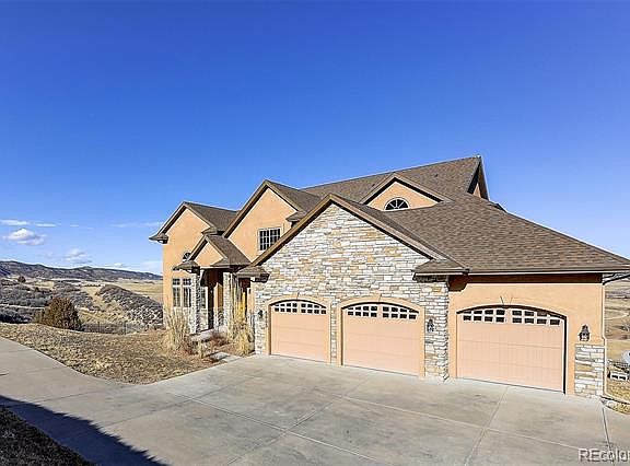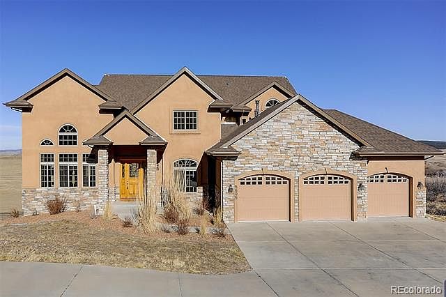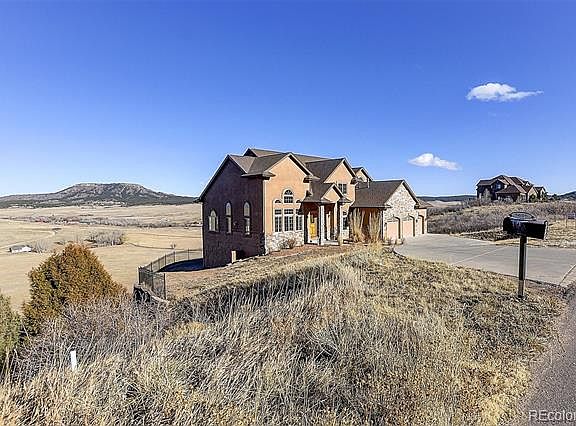 Views of Mountains & Red Rock Formations! Valley Views all the way to Castle Rock! Dramatic Custom 2-Story w/Main Floor Master Bdrm. Quality Finished Walkout Bsmt on 1-acre lot. Only 1/2-mi to the clubhouse of the Perry Park Country Club & the driving range is even closer * 5 Bedroom/5 Bathroom home w/5,588 Total Sq. Feet (approx. 5,374 SF finished) * 3 gas-log fireplaces, 8 foot tall doors on the main level with oil rubbed bronze doorknobs, plus an extra wide staircase. Formal Dining Room AND Spacious Kitchen w/eating space. Slab granite counters, wood and tile floors, 5 burner gas range, stainless steel appliances, custom hickory cabinets, built-in kitchen desk and island with sink #2. Twenty-foot tall ceilings in Living Room. Large utility/mud room just inside the spacious finished 3-car garage. Tremendous views of Dawson's Butte and the Plum Creek Valley from all 3 levels. Covered concrete walkout patio extending into a 30 x 40 foot flagstone patio plus 40-foot partially covered Trex deck!
