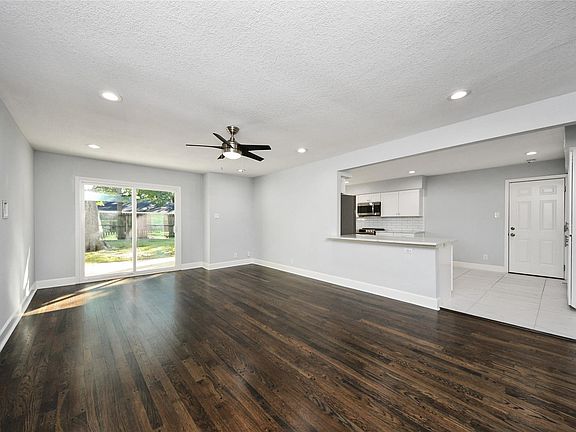Generous fenced lotQuartz countertopsHigh windowsNatural lightBrand-new cabinetsDark-colored rain guttersOpen-concept kitchen