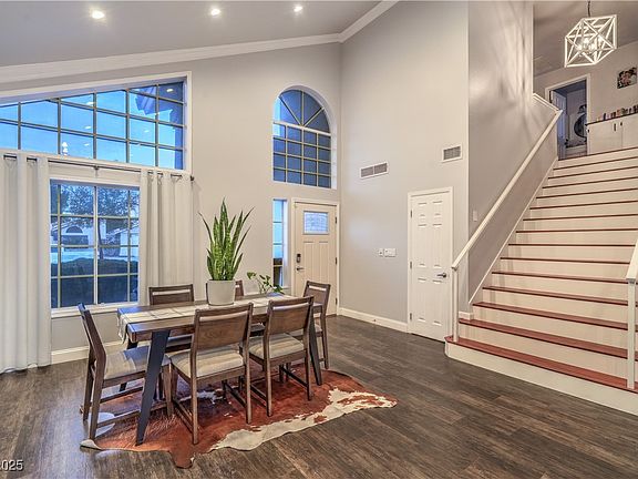 Welcome home to the Eldorado community of North Las Vegas. This Meticulously maintained two-story residence features 3 bedrooms, gated RV parking, fresh interior paint, and a new water heater. The updated remodeled kitchen shines with modern finishes and flows seamlessly into the open living/dining space. Vaulted ceilings compliment the space, with French doors leading to a spacious outdoor area perfect for entertaining. A dramatic wide staircase makes a striking first impression connecting to the second level where you will find two spacious secondary bedrooms and a primary suite with a walk-in closet and a modern beautiful bathroom. This home is a true must-see.