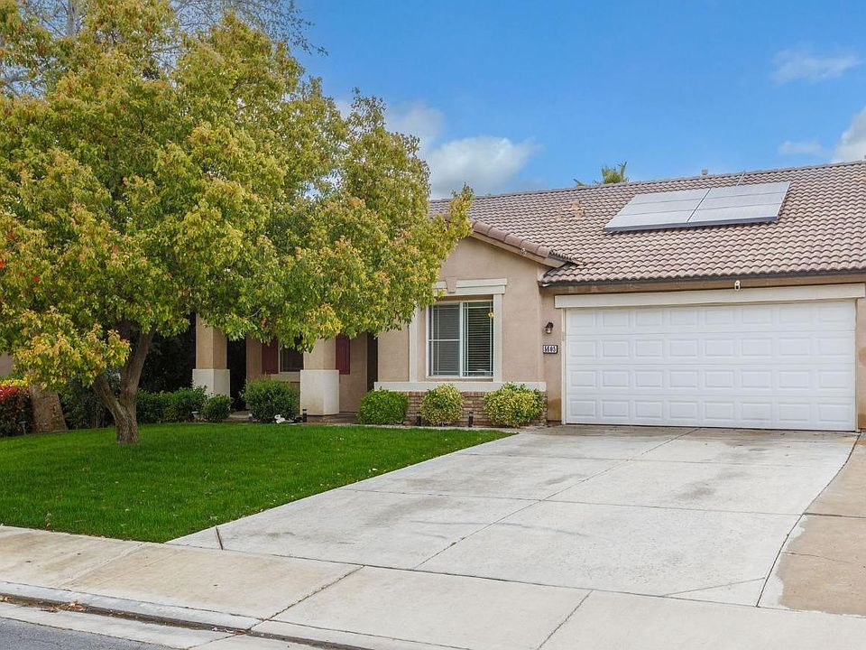 Best value in the popular Tradewinds'' neighborhood in Southwest Bakersfield. Lennar built, 3brs plus office with French doors. Spacious great room and dining rooms with vaulted ceilings and fireplace. Polished concrete flooring thru out except for bedrooms, center island kitchen with pantry and lots of storage, large ensuite with dual vanities, shower/tub combo and walk in closet. Extended covered patio and large backyard. Walk to neighborhood park and shopping close by. Solar and gardener included in rent. Solar is included in rent, tenant is responsible for true up. Lease term 1 year, no pets and renters insurance required.