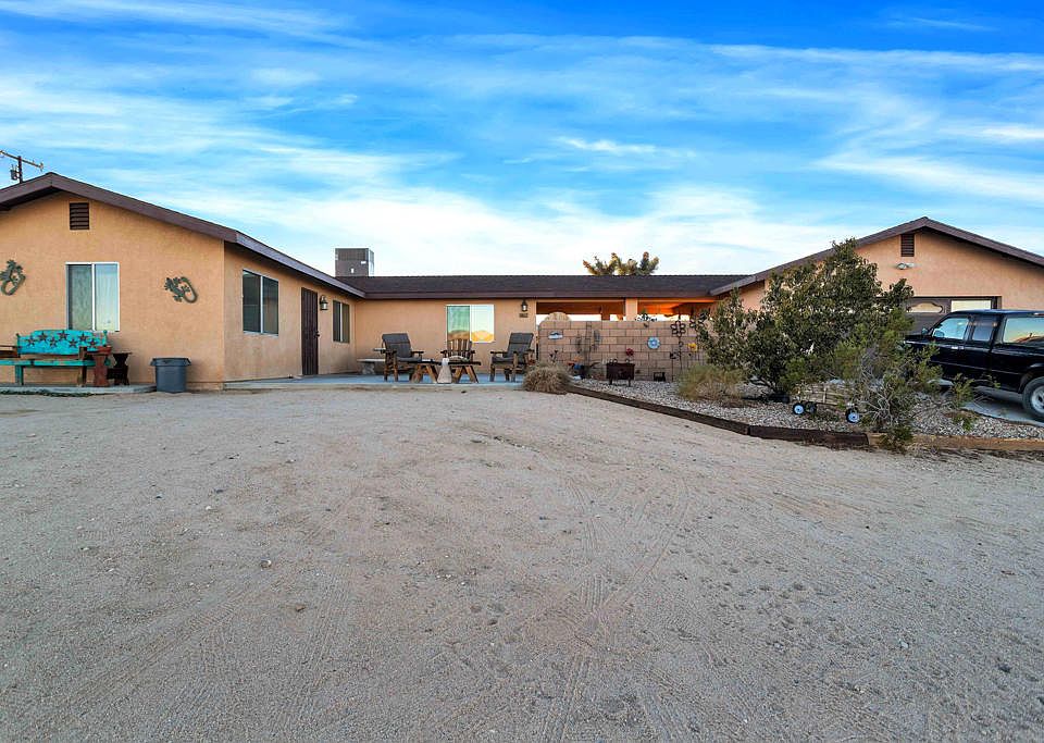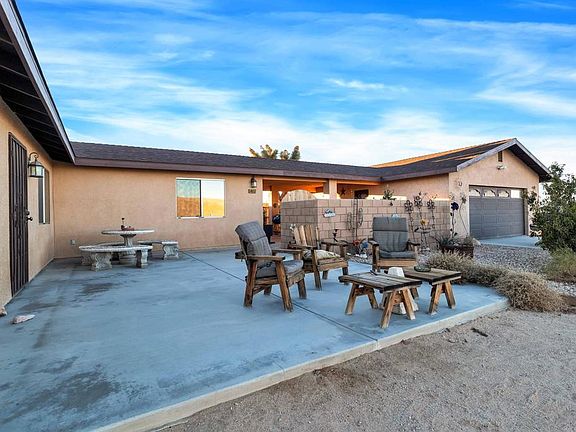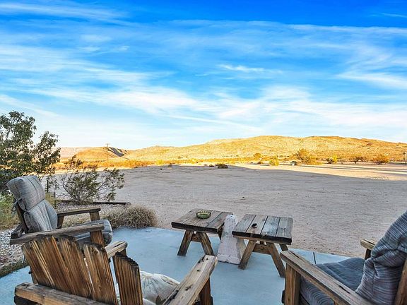 PRICE REDUCTION. Seller will provide a $4000 credit to buyer at close of escrow. 5 acre completely fenced in compound. 2 full RV hookups one on each end of thehome, one shares main septic, the other has its own septic. Amazing view in alldirections. No short term rental restrictions. Home has been completely rebuilt from the foundation to the roof. The primary residence has 1 bedroom and 1 full bath and a Laundry Room/Pantry. Knotty wood pine walls, with an open beam ceiling. A/C. Heatunit only 2 years old. A Finished Two car Garage, including a Bathroom, a custom built closet and a swamp cooler, it is currently being used as a living space.. Solar Powered Gate can be opened and closed by a remote. Close to King Of The Hammers event. You can drive your off road vehicles right out of the gate to any of the several Off Road Trail Heads in the area. Undeveloped hot springs are nearby property, No close neighbors. Great potential for AIRBNB.
