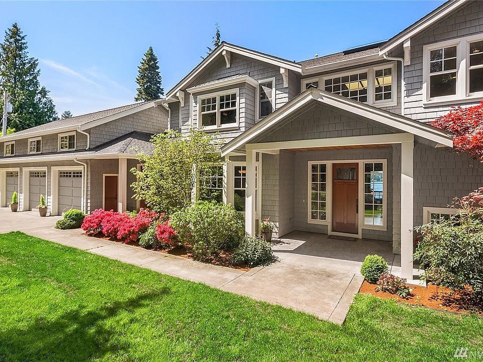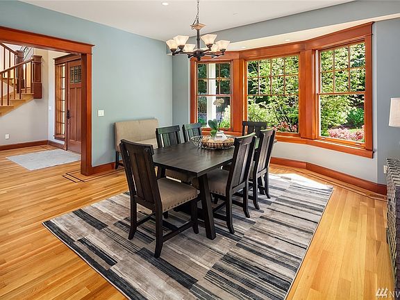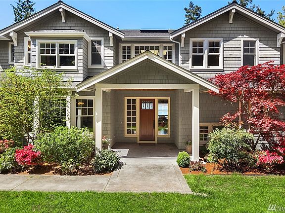 Spectacular Views! Lake Washington, downtown Seattle and lingering Sunsets await you in this 2008 custom built Northwest Lodge style home. The great room features a beautiful stone fireplace and opens to the gourmet kitchen. This large home has room for all with large den, formal dining, rec room, media room and more. Spacious master suite is upstairs with two additional bedrooms. Unique, private setting adjacent to vacated street with path to Lake and also a short walk to Groveland Beach!