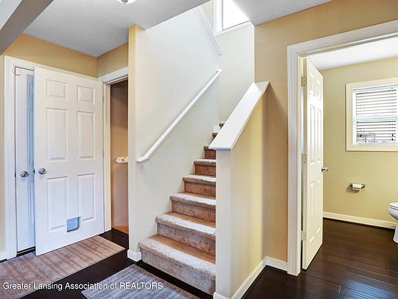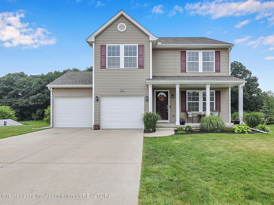 Holt Schools! Great Location!! Like new but better -blinds, beautifully landscaped, fenced yard, shed and so much more!This 4 bedroom, 2 1/2 bath (plus stubbed for bath in basement) home was built in 2013; well maintained and clean with fresh paint and bamboo flooring! The main floor offers an open concept. The eat-in kitchen has granite counters, stainless steel appliances and a door leading to a deck overlooking the extra large back yard! Fireplace in the living room stays with the home. First floor flex room is bright, and perfect for an office, den, playroom or formal dining room. The second floor offers three bedrooms, including a large master suite and huge landing which could be a family room, study or play area or another home office. The second floor laundry room with folding counter and cabinets is very convenient. The finished basement offers a fourth bedroom and another family room with a walkout to the patio. Tons of storage, new roof in 2019.