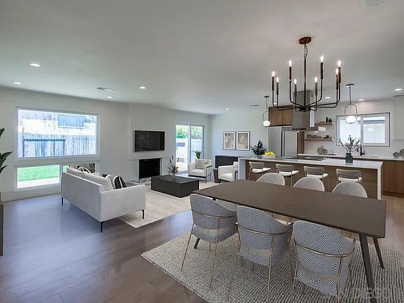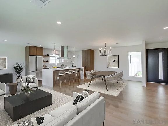 Welcome home to this beautiful, modern open-concept 3 bed 2 bath home in centrally located Clairemont. This home features a large kitchen with island and bar stool seating, great room that offers a spacious dining room area, wood burning fireplace, and large living room. Additional features include dual pained windows, European style cabinets, quartz counters with waterfall edges, LED lighting throughout, drought tolerant plumbing fixtures, designer tile, and a large, flat backyard with patio and plenty of room for a pool! The spacious master retreat with en-suite bath and large closet make this a place you will never want to leave! Just 15 minutes to the beach and 20 minutes to downtown and all that San Diego has to offer!