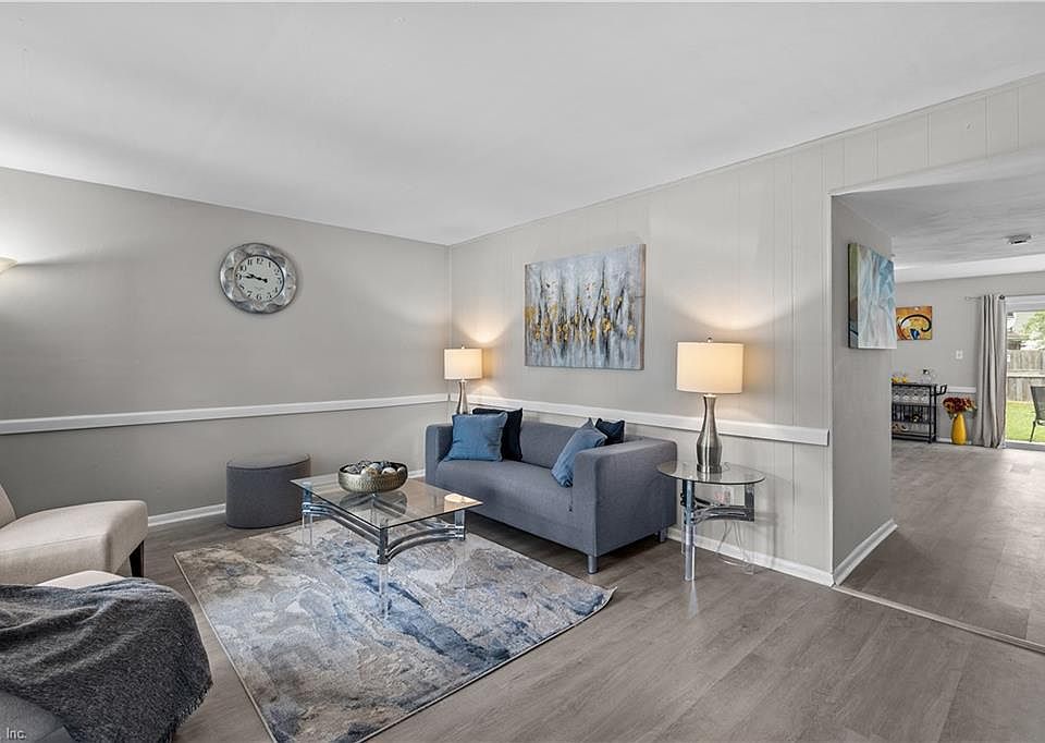 Beautifully renovated townhouse in Virginia Beach featuring 3 bedrooms and 1.5 baths. Enjoy new LVP flooring throughout, fresh carpet on the stairs, and a modern paint palette. The living room is a few steps away from the updated kitchen with stainless steel appliances, white cabinets, and granite countertops, plus a versatile bonus space perfect for dining or a family room. The first floor also includes a half bath and laundry closet. Upstairs, the primary bedroom offers direct access to the full bath, updated with a new vanity, mirrors, lighting, and fixtures, alongside two additional bedrooms. Outside, a fully fenced backyard with attached storage shed provides the perfect spot for relaxing or entertaining. Conveniently located near Town Center, Norfolk Premium Outlets, and quick interstate access. Don't miss out on this one!