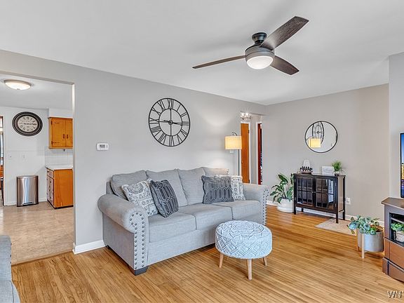 The large rear bonus room (possible third bedroom) features a cozy gas fireplace and overlooks the mostly fenced backyard, perfect for relaxing or entertaining. Enjoy the convenience of first-floor laundry, an attached one-car garage, and a full basement that provides excellent storage or workshop space.