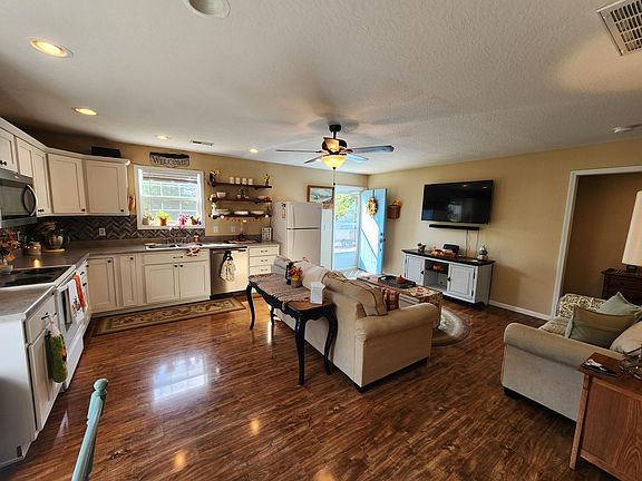 Make your own little homestead here! Beautiful 8.47 +/- acres that's a mix of wooded and cleared land with a Lovely home that's move in ready ! Maintenance-free metal siding and roof with an open floor plan Living/ Dining /Kitchen area. The Jack and Jill full bath with shower/tub combo is accessible from living area and connects to a bedroom with large walk-in closet. The largest Bedroom features another big walk-in closet and an alcove currently used as a office space but would also be a useful area to add another bathroom. The Mud /Storage Room is partially finished with the walls being textured ceiling is finished and cement floors were previously polished this room could easily be converted to additional living space or a 3rd non conforming bedroom 5 acres are fully fenced with 4 lines of barbed wire for livestock. there is also a wet weather creek area beside the home. This darling home has so much potential . Grow a garden, plant some fruit trees, raise some livestock and chickens . Or simply enjoy the peacefulness of your own private land with beautifully kept acreage. Don't miss your chance to see this one!