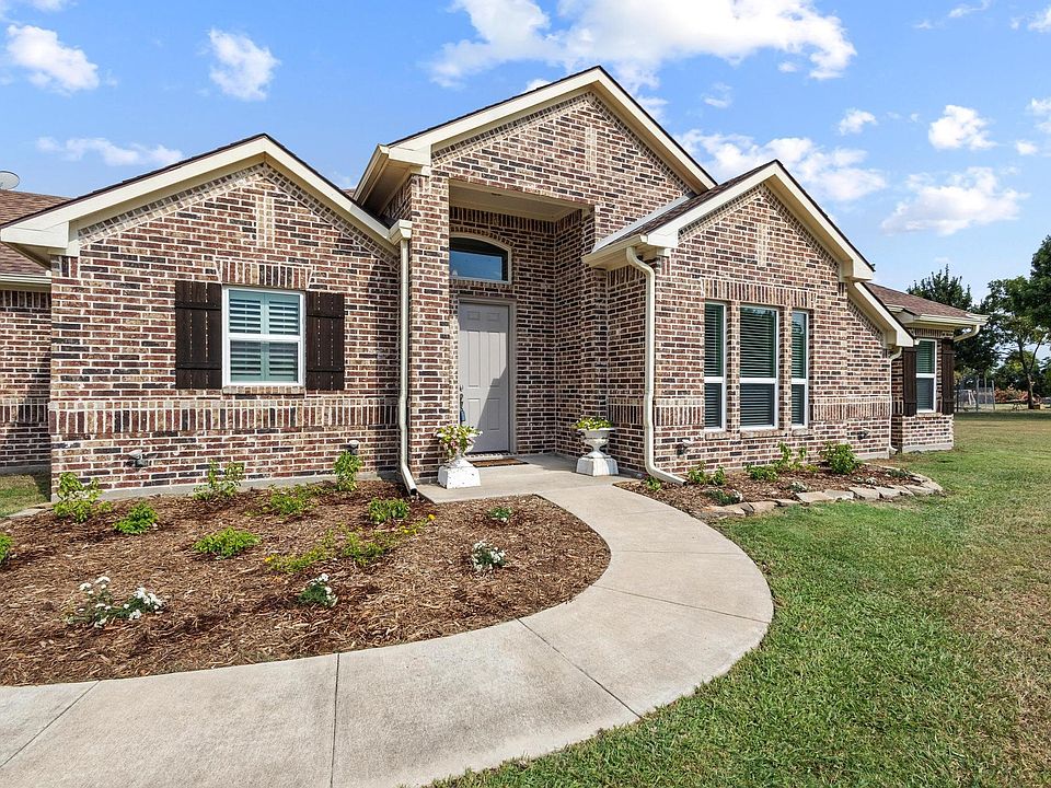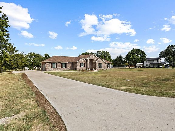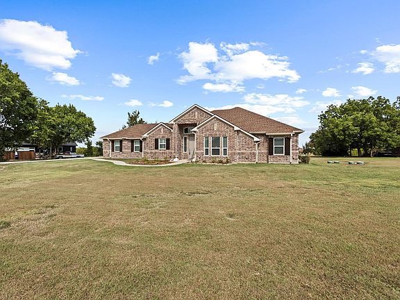 Beautiful custom brick home on nearly 2 acres near Lake Lavon! This 3-bedroom, 2-bath property combines country living with modern comforts, less than an hour from the DFW Metroplex. Designed with an open-concept layout, the home feels light and bright throughout, with vaulted ceilings and a stunning stone fireplace creating a warm, inviting centerpiece.