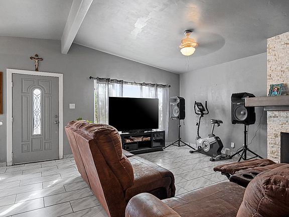 Updated 3 bedroom 2 bathroom single-story home. Features include vaulted ceilings, tile flooring throughout, and a cozy fireplace in the spacious living room. The remodeled kitchen offers quartz countertops, mosaic tile backsplash, and dark wood cabinetry. Dual-pane windows, ceiling fans, and modern interior finishes add comfort and style. Conveniently located near schools, parks, shopping, and freeway access.