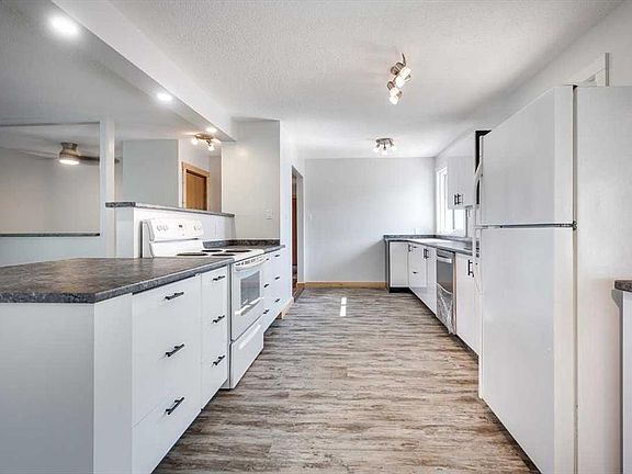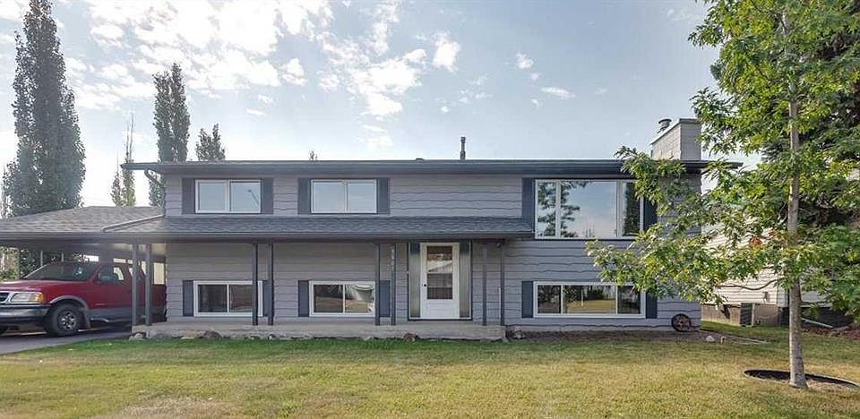 Welcome to 5607 48 Avenue in Lacombe – a spacious home with extensive updates and a versatile floor plan. The main floor has undergone substantial renovation, including new flooring, a fully updated kitchen with modern appliances, a new 4-piece bathroom, and fresh paint throughout. The lower level has also been refreshed with a renovated 3-piece bathroom, new paint, and features a large family room highlighted by a brick-facing natural gas fireplace. The main level includes three bedrooms, with one currently set up as a home office, along with an L-shaped living/dining room that provides ample space for family gatherings. The home also features a separate entrance, offering flexibility for extended family or guests. Upgrades extend to the exterior with all new vinyl windows, a new set of garden doors, and a complete exterior repaint within the past year. Outdoor living is enhanced by a 7.5 x 21 covered deck overlooking the backyard with tall spruce trees, providing shade and privacy. Parking options include a front covered carport with direct access to the basement, as well as a single garage in the backyard. There is also plenty of space to accommodate RV parking. This property is located directly across from the hospital and within close proximity to the Lodge, making it convenient for healthcare access and community services. With its thoughtful renovations, functional layout, and excellent location, this property offers space, comfort, and opportunity for a wide range of buyers.
