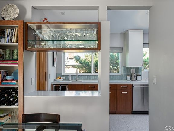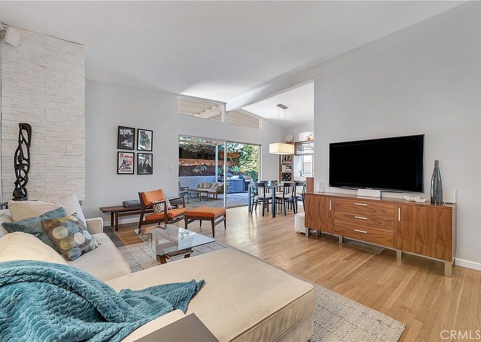 Designed by renowned architect Martin Stern in the idyllic 1950s Encino Village enclave, this 4-bedroom, 2-bathroom Mid-Century Modern home has been thoughtfully preserved and upgraded by a professional designer to maintain the original character of the home. The inviting living room boasts vaulted ceilings, hardwood floors, clerestory windows and a striking quartz stacked stone fireplace. The dining area is seamlessly integrated between the kitchen and living room. Glass doors connect the indoor spaces to a picturesque rear patio, perfect for entertaining or relaxing. The custom 2020 kitchen is top of the line, featuring Crystal Fine Cabinetry, a quartz waterfall counter, artisan tile backsplash, top-tier stainless appliances, under counter wine fridge and Terrazzo tile floors blending timeless design with modern functionality. Designer elements are thoughtfully incorporated throughout the kitchen, including Vintage Pendant Light and Wall Sconce. Separate Laundry room incorporates matching cabinets and includes the Washer and Dryer. Each bedroom offers hardwood floors and vaulted ceilings, while the updated bathrooms balance classic mid-century and contemporary fixtures. The beautiful entertainer’s yard features a covered patio, outdoor kitchen cabinets, a Weber grill, and an Ooni pizza oven. Enhanced with custom stone patio, artificial lawn, terraced landscaping, and smart irrigation, it’s perfect for outdoor dining or morning coffee. Additional upgrades include a 2019 roof and solar panels, seismic retrofitting, dual pane windows, copper plumbing, a 200-amp electric panel, and EV charging in the double garage. This home beautifully combines authentic mid-century charm with modern convenience. Award Winning Encino Charter Elementary.