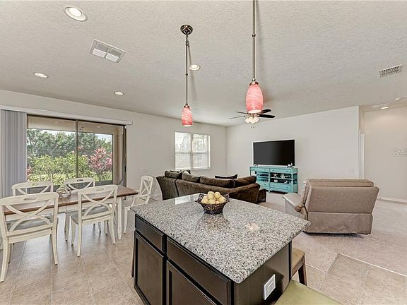 Welcome to this nature lover's paradise in Harrison Ranch! You're sure to catch a glimpse of Florida wildlife while enjoying pond and preserve views from the screened in lanai or the extended paver patio off to the side of the lanai. This split floor plan offers privacy to both you and your guests. Eat-in kitchen has a center island with pendant lights, stainless steel appliances, granite counter tops and a tile backsplash with glass inlay. Large laundry room has cabinets for storage as well as room for added shelving or storing cleaning equipment. The owner's suite features an en suite master bath with stand-up shower, double vanities, linen closet and a large walk-in closet. 2-car garage has an epoxy painted floor and was built with a 4-foot extension to make room for all your outdoor toys. Harrison Ranch has amenities to suit every family member which include a 24-hour fitness center, a heated Jr. Olympic swimming pool, billiards & game room, 5 miles of walking trails, 2 playgrounds, tennis, pickleball and basketball courts. The amenity center is less than 1 mile from the house. Conveniently located near I-75 and I-275 makes for an easy commute to St. Pete, Tampa, Sarasota & Bradenton. Don't wait a second longer to start living your Florida dream!