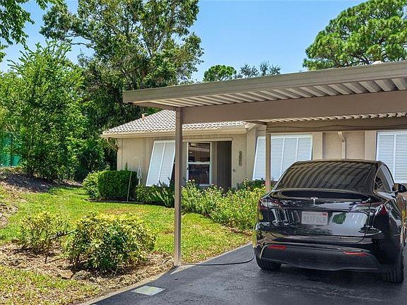 Welcome to Garden Lakes, a highly desirable 55+ community where this rarely available 2-bedroom, 2-bath end unit offers the perfect blend of comfort and Florida lifestyle! Inside, soaring vaulted ceilings create an open, airy feel, while the private screened lanai is ideal for morning coffee or evening relaxation. Home features spacious primary suite with walk in closet, access to lanai and private bath. Generous sized kitchen with ample cabinet space and kitchen eating area as well as dining space. This community is designed for active living with a heated oversized heated pool shaded by oak trees, tennis and pickleball courts, a clubhouse with dinners, live music, and a library, monthly events, cards, exercise classes and more. Recent updates include a new AC, new water heater, and a 110v outlet perfect for electric vehicle charging. The home includes a stackable washer and dryer, and furniture is optional making it easy to move right in. With endless opportunities to relax, connect, and enjoy Florida sunshine, this home is more than just a place to live it's a lifestyle. Schedule your private tour today!