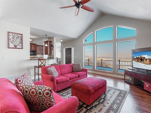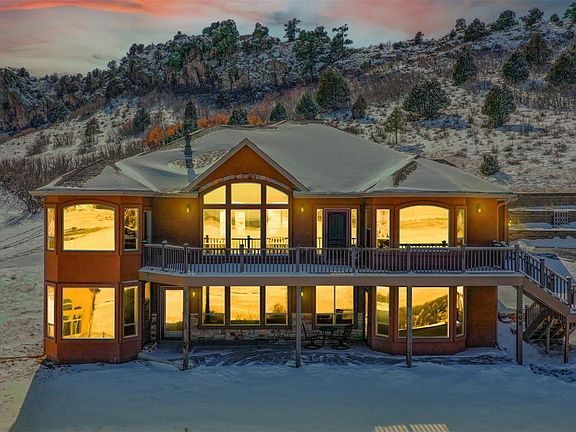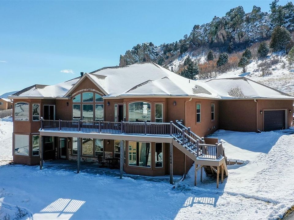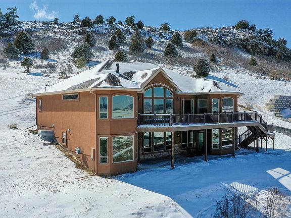 If your vision of "Colorado" includes rock outcroppings, seclusion, blue skies, sunshine and expansive views, you should definitely take a look at this great ranch style home on 1 acre in Perry Park backing to almost 10 acres of greenbelt. The greenbelt makes the lot seem much larger and it provides a ridgeline of privacy from the rear of the home and hiking right out your back door. From almost every window inside the home and the enormous front deck, you will enjoy sprawling views of Dawson Butte and views reaching as far as Littleton. Open and airy floorplan with approximately 3,528 finished square feet including 5 bedrooms (3 on the main level and 2 master suites) and 4 bathrooms + a dog wash in the mudroom. The main level kitchen has alder cabinetry, breakfast bar, pantry and Hickory hardwood flooring. The hardwood flooring expands to the dining room with bay window & great room with stone encased gas burning fireplace, vaulted ceiling & wall of towering windows....did I mention the views? French doors lead to the back covered patio with outdoor fireplace that offers a very cozy and private entertaining space with views of the massive red rock formations. The main level master suite provides another opportunity to star gaze or read a great novel in the sitting area with coffered ceiling that opens to the front deck. Relax in the spa like 5 piece master bath w/radiant in floor heat, dual closets, jetted tub & separate water closet. The walk-out lower level works well for multigenerational living & was finished in 2016 & includes the massive 2nd master suite w/exterior door, bay window & stunning en suite bath w/granite counters & beautiful cabinetry. You will also find another bedroom, 3/4 bath, office, family/rec room, laundry & the stunning 2nd kitchen w/sink, dishwasher & refrigerator in the lower level. Tandem 4 car garage w/drive through door. Near award winning Perry Park County Club & golf course, bike & hiking trails, horse stables & Pike Nat'l Forest.