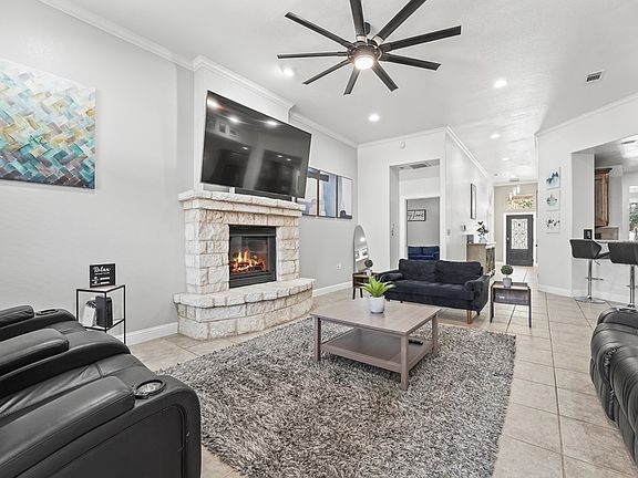 Welcome to this stunning 2008 build in the Los Patios subdivision. Designed with a light, bright atmosphere and an effortless flow, this home is perfect for both everyday living and entertaining. The spacious floor plan highlights a huge master suite complete with a generous walk-in closet and plenty of room for your own retreat. Step outside to a backyard built for gatherings, featuring a custom outdoor kitchen and fireplace—ideal for relaxing evenings or hosting friends and family. Guest bedrooms will feature new carpet before closing!