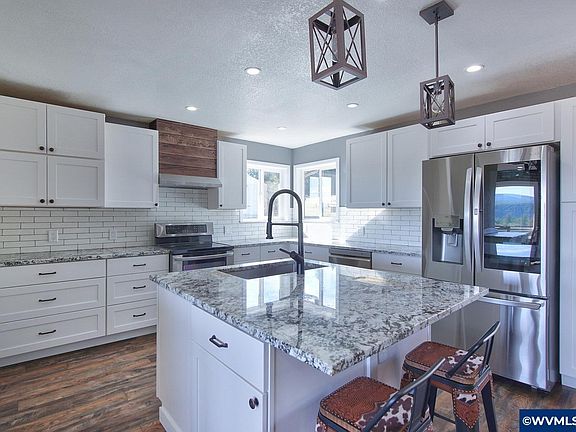 Peaceful, Private & Stunning views! This horse property has it all. 16.49 acres w/electric cross fencing. Huge 132x72 covered riding arena with LED lighting. 90x48 barn, 3-10x10 stalls & a huge birthing stall w/covered run, tack room, 2 hay storage areas, chicken coop, trailer storage. RV hook-up/parking. 48x48 shop w/4-12ft bay doors & welder plugged. Multiple horse shelters. Large-small animal shelter w/power/water. This 4 bedroom, 3 bath, 2592sqft home is move in ready! Newly remodeled. A must see! 5 different varieties of apple trees, 3 pear/1 Asian pear, pie cherry, Rainer cherry, 2 nectarine & 4 peach trees. Lavender & vegetable gardens. Woodshed. Dog shelter. New gated driveway, newly painted inside & outside home, freshly stained deck. New luxury laminate wood flooring throughout, new French doors, Completely remodeled kitchen w/all NEW soft close cabinets, new granite, new trim, SS appliances including a new refrigerator, new hood vent & vent cover, new walk in pantry w/shelving, new GFI/plug-ins, new tile backsplash, new smart thermostat. Completely remodeled hall bathroom w/new tile floor, new vanity, new linen closet, new tub, new tile in shower, new shower fixtures, new lighting, new fan, new blue beetle shiplap, new water heater in 9/2025 in attached 2 car garage, newer furnace & heat pump in 10/2024, all new trim downstairs, new shower fixtures, heated floors in bathroom downstairs & in primary bathroom, all new lighting, plug-ins, light switches & fan downstairs. 2 pellet stoves, one on each floor. So many more details to this property/home. It's a must see!