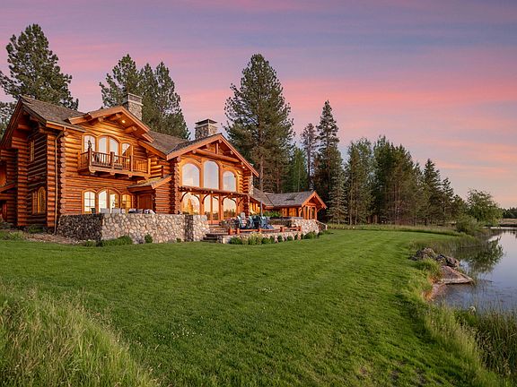 This unique custom log home is located in the sought-after community of Vandevert Ranch, offering 21 homesites spread across 350 acres of open space on the Little Deschutes River. Once inside the property, you'll be met with stunning water and mountain views. Boasting over 5,000 square feet of living space, the home features a floor-to-ceiling stone fireplace, a spacious great room, dining area, kitchen, theater room, 3 en-suite bedrooms, a bunkroom, mudroom/laundry, loft with a pool table, and a sunroom. The primary suite includes a fireplace, a walk-in closet, a luxurious tub, and a balcony overlooking the Cascade Mountains. The kitchen and dining area includes built-in cabinets, two refrigerators, a pantry, and a breakfast bar. The property is surrounded by water features and offers an expansive patio space nestled within the trees. Conveniently situated near Crosswater, Sunriver, and just 20 minutes to Bend, this property has so much to offer!