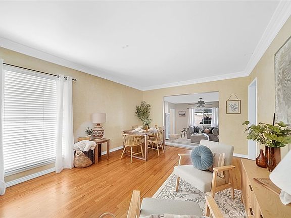 Each bedroom is generously sized, with the primary bedroom strategically located at the rear of the home for enhanced privacy. Convenience meets functionality with the attached 1-car garage providing easy access to the washer and dryer hookups. A major highlight is the some updated plumbing, ensuring reliability and peace of mind. Open the French doors and transition to your private backyard, complete with a brand-new insulated aluminum patio cover. Whether you're unwinding or entertaining, this outdoor space is the perfect retreat. Centrally positioned, this home offers proximity to popular restaurants, shops, entertainment, and convenient freeway access. With its blend of character and modern upgrades, this residence is ready to welcome you home. Don't miss the opportunity to make this property yours – schedule an appointment today!