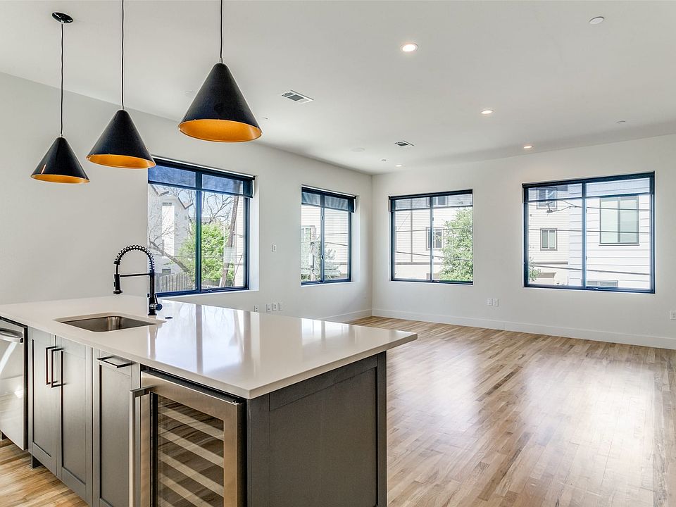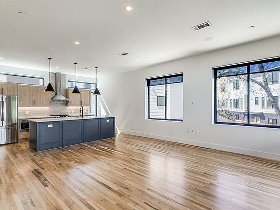 SPECIAL! 1 month FREE with 15 month lease term. Luxury townhome featuring high-end finishes, a premium smart home package & superior energy efficiency. Fantastic end-unit townhome with a private turfed yard, covered patio, office nook & a two-car garage on the first level. Head upstairs to the expansive living spaces with an open floor plan, complemented by beautiful hardwood floors & soaring windows that flood the rooms with natural light. Enjoy the chefs kitchen, equipped with a sprawling island, stunning wood cabinetry, quartz countertops, pantry & high-end appliances. Retreat to the primary suite, where vaulted ceilings, a spacious bedroom, a walk-in closet & a spa-like bath await. Effortlessly manage your smart home with the Brilliant Smart Home hub or app, allowing you to controll all the smart home tech from your fingertips. Located near some of the city's finest bars, restaurants, shops, & parks. Photos are of similar unit and same floor plan. 2025-10-31