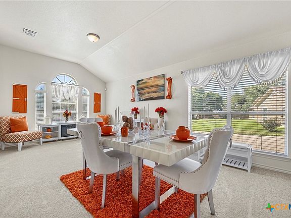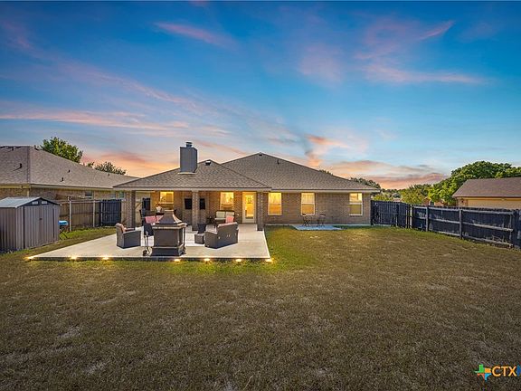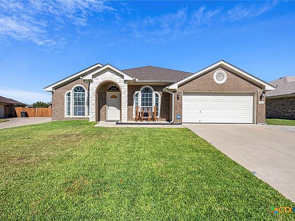 This immaculate home is located within a well-maintained, established community adjacent to Harker Heights, TX. The residence features three bedrooms and a study, two bathrooms, a two-car garage and nearly 2300 square feet. Upon entry, a formal dining room and living area are located to your left, across the hall you will see the study with french doors. The floor plan incorporates a wrap-around concept with a split layout. Down the hallway, the primary bedroom is to your left. The main bathroom includes a separate shower, a garden tub. The kitchen is located on the right. It features freshly painted cabinets and an oversized pantry. The living room opposite has a wood-burning fireplace and secure mantel. Returning to the hallway, you will find two bedrooms on the left, with a bathroom directly behind the study with a linen closet, leading back towards the front of the home. The backyard features an extended patio area, fully fenced and a generously sized, cul-de-sac lot and is move-in-ready! The sellers have made the updates to include: new carpet and laminate throughout, new lighting in the kitchen and dining rooms, new kitchen and bathroom faucets, fresh paint on the cabinets and baseboards throughout, new slab addition on the driveway and new extended patio on the back, newer appliances and a new microwave. Grass installed in the front in October of 2024. The sellers have taken excellent care of this home and it shows! Call your favorite realtor for an appointment today or text me for a private viewing.