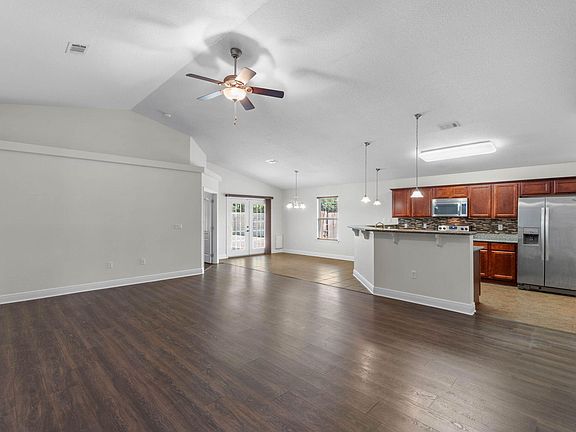 This all-brick 3-bedroom, 2-bath home offers the perfect blend of comfort, style, and convenience. Featuring 1,922 sq. ft. of living space, a two-car garage, and a large fenced backyard on a .36-acre lot, this property is a true find. Beautiful luxury vinyl flooring leading into a spacious open floor plan. The family room flows seamlessly into the dining area and kitchen, complete with granite countertops, stainless steel appliances, a wrap-around breakfast bar, ceramic tile flooring, and ample cabinetry. A walk-in pantry and separate laundry room add to the home's functionality. The private owner's suite is tucked away just off the family room and features double doors, a spacious walk-in closet, dual vanities, soaking tub, and separate shower. Two additional bedrooms and a second full bath are thoughtfully designed for comfort and privacy. Enjoy the outdoors with a large fenced backyard, perfect for entertaining, gardening, or relaxing under the covered back porch. With no HOA. Ideally located near Baker School and just a short commute to local military bases, shopping, and dining, this home is move-in ready and waiting for you. Don't miss the opportunity to make 5609 Price Plantation Rd your new address!
