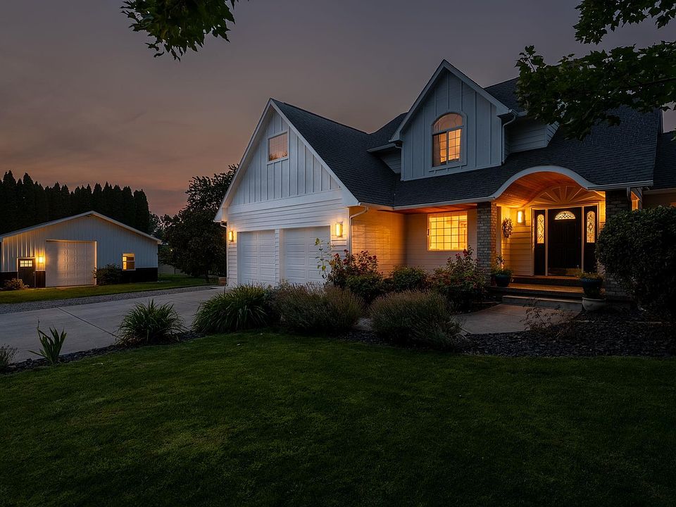 MLS# 287197 Welcome to this two-story daylight basement home, set on just over an acre in one of West Pasco's most desirable neighborhoods. Your own beautiful farmhouse, this one-of-a-kind property offers space, style, and endless possibilities. Step inside and experience a home built for both everyday living and unforgettable entertaining. The soaring ceilings, expansive windows, and cherry hardwood floors create an inviting open living space. The large kitchen is a true centerpiece, showcasing quartz countertops, a full tile backsplash, travertine tile, and abundant cabinetry, all opening seamlessly to the dining area bathed in natural light. Upstairs, the primary suite feels like a private retreat, complete with a spacious closet, dual vanities, and a luxurious jetted tub/shower combination. Two additional bedrooms and a beautifully appointed hall bath are thoughtfully placed and all are conveniently located upstairs. The fully finished daylight basement expands the living space with a generous family room, another full bathroom, additional bedroom, and a versatile bonus room with walkout access to the outdoors There is even plumbing to add a kitchen on the lower level. Outdoor living takes center stage with a full-length deck overlooking the beautiful backyard. Decorative curbing, mature trees, and vibrant plantings add to the charm, while the fenced side yard and ample open space provide flexibility for recreation or even a future pool. The property's crown jewel is the remarkable 35x50 insulated and finished shop. With its 11-foot roll-up door, side entry, water heater, private suite with bath, two additional rooms, lofts, and a setup for a future kitchen, this versatile structure offers countless options— from hobby space and storage to creative studio or guest accommodations. Every detail of this property has been thoughtfully designed and meticulously maintained, making it a rare find in West Pasco. With its expansive layout, high-end finishes, and unparalleled shop space, this home is a must see!