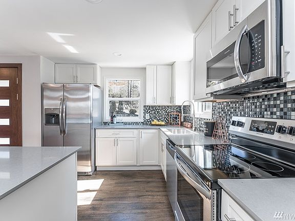 Complete luxury remodel in desirable Windsor Hills! Intelligent, functional design, this stunning home leaves no expense spared. 3 big bedrms incl a master w/ walk-in closet. Chef's kitchen w/ full appliance package, high-end cabinetry, quartz counters + huge island. Bath w/ heated tile floors. Big daylight basement. Huge lot with custom, 5-star landscaping + garage w/ room for storage! Sweeping views from the big balcony. Just minutes to I-405 and downtown - easy commute to Bellevue/Seattle!