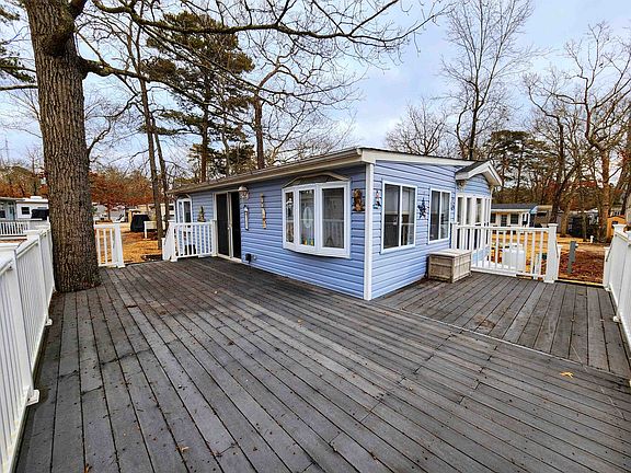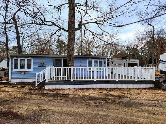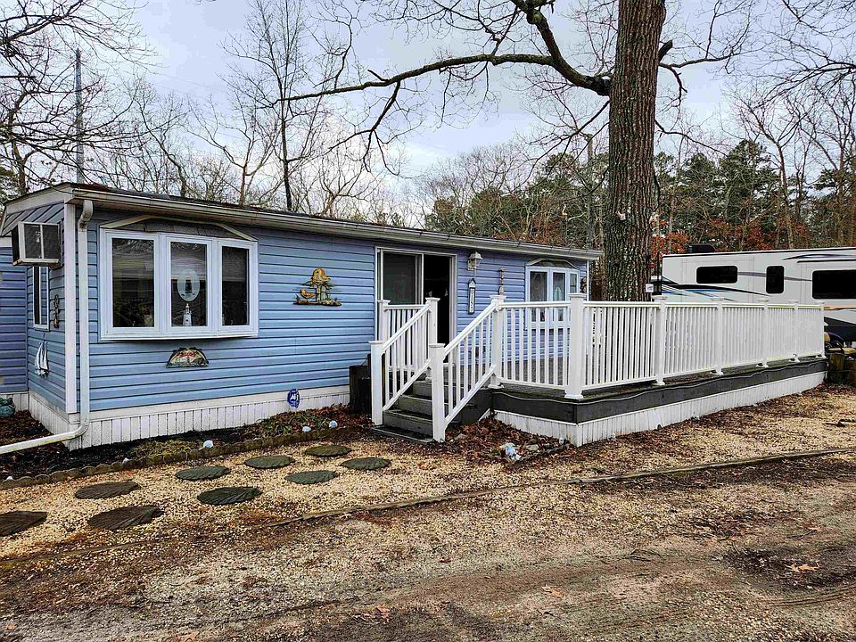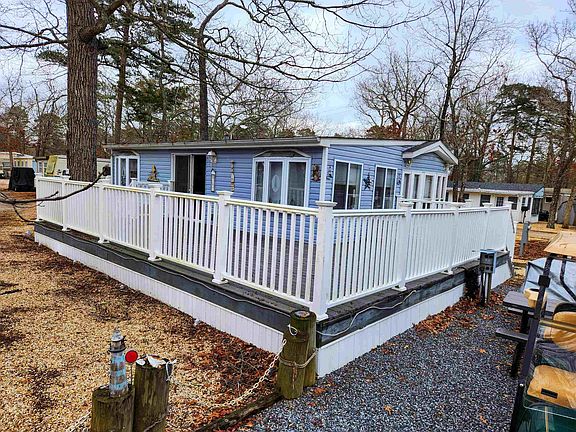 Welcome to Down the Shore seasonal resort. This 2 bedroom, 1 bath park model has been meticulously maintained. This home boasts a huge wrap around maintenance free deck for summer gatherings, sleeps 8 and has a beautiful Florida room. This resort has fun activities for all, including a lake with a beach, mini golf, playground, pickleball court, outside movie theater and more. Make an appointment for a private showing today. Season runs April 1 to Oct 31, lot rent for 2024 is $6,200. Golf Cart Included!