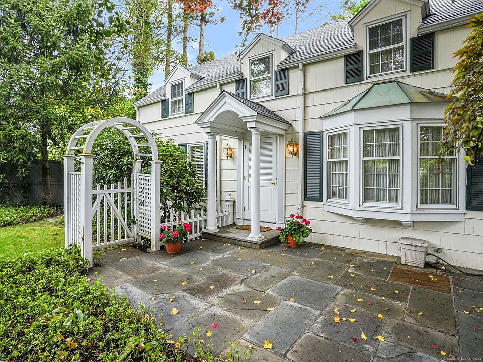 Come see this special 4 Bedroom/2 Full Bath Colonial gem located in the heart of Stamford. This property has been home to its owners for the past 40+ years and has been lovingly cared for both inside & out. This home boasts exquisite Millwork throughout, Crown Moldings, Coffered Ceilings, Hardwood Floors and Central A/C. You will find Gas Log Fireplaces in the Kitchen, Family Room & Living Room. Skylights in the Kitchen, Family Room and Primary Bathroom provide extra natural light in an already sun filled house. As you enter the home and walk into the Living Room you will find beautiful Hardwood Floors. Gazing through the French Doors you will see lush gardens & plenty of Patio space for all kinds of outdoor living. The Dining Room with its Built-In Hutches is versatile to host intimate dining or large dinner parties. The Eat-In Kitchen has plenty of space for everyone to get involved without getting in each other's way. The Family Room is an unexpected surprise with soaring ceilings, skylights, a wall of windows and access to the tiered Patio. The Primary Bedroom has 4 closets for lots of storage. The 2nd Upper Floor Bedroom has Built-Ins & an attached Dressing Area with plenty of closet space. The 2 Main Floor Bedrooms have ample closets & Built-In Cabinetry. All 4 Bedrooms have protected Hardwood Floors under the Carpets. This property is tucked away for lots of privacy yet accessible to all Stamford has to offer.
