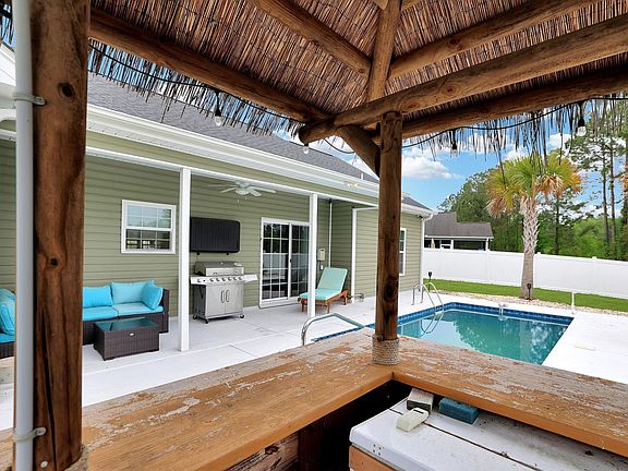 Introducing this spacious 3-bedroom, 2-bathroom home nestled in the serene Polo Farms neighborhood. This charming home presents a fenced-in backyard adorned with an inviting in-ground pool, creating a perfect oasis for relaxation and entertainment. As you venture inside notice the nice appointed features that include wood look tile flooring and smooth flat vaulted ceilings with a fan in the main living area. The kitchen is equipped with a stainless steel smooth flat top range & built-in microwave, dishwasher, tile back splash, granite counter tops, cabinets topped with crown moulding, a breakfast bar, access to the laundry room, and a family dining area that showcases a sliding glass door the opens up the sparkling in-ground pool. Retreat to the primary bedroom, offering both comfort and style with its tray ceiling with a chandelier, his & hers double door closet spaces, private access to the primary bath hosting dual single sink vanities, a comfort station, a jetted tub, and a deluxe step-in shower. Additionally, this home features two more well-proportioned bedrooms, a full bath to accommodate the needs of family or guests, and a two car attached garage. This home affords you easy access to the beach and golfing along with all of the other activities and happenings in Longs, North Myrtle Beach & Myrtle Beach including fun eateries, award winning off-Broadway shows, public fishing piers, and intriguing shopping adventures along the Grand Strand. Conveniently located to your everyday needs, including grocery stores, banks, post offices, medical centers, doctors’ offices, and pharmacies. Check out our state of the art 3-D Virtual Tour.