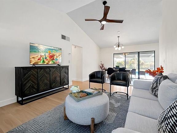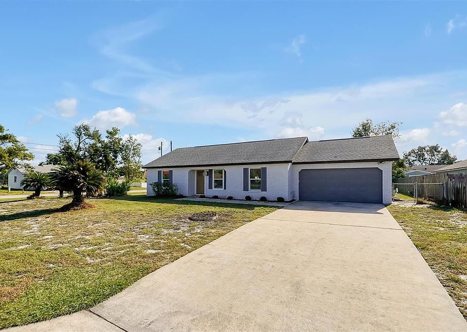 This gorgeous renovated pool home shows like a model! Features include all new waterproof luxury vinyl flooring, 2 beautifully remodeled bathrooms, all new kitchen with wood shaker soft close cabinets, quartz countertops, marble backsplash and new stainless steel appliances. This home also has a new HVAC, newer roof, it has been freshly texured and painted throughout, has a large 2 car garage with brand new quiet garage opener, all new upgraded lighting throughout and high end cieling fans. This home also has a large in ground swimming pool with a brand new liner and sits on a big corner lot with a fenced in yard that is perfect for families. Remodeled pool homes with this many upgrades at this afforable price point are hard to find. The neighborhood is quiet and conveniently located close to everything and only about 30 minutes to Orlando and also an easy drive to the beach. This beautiful home is turn key and move in ready. Schedule a viewing today.