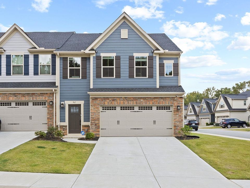 Come see this beautiful, almost new end unit in the desirable neighborhood of Merrydale Village. This home features 3 bedrooms and 2.5 bathrooms, offering a spacious open floor plan with luxury vinyl plank flooring. The open kitchen includes an island and quartz countertops, perfect for entertaining. Natural light fills the main level thanks to extra windows. Upstairs, you will find the primary bedroom, which boasts a tray ceiling and an oversized en suite bathroom. Two additional bedrooms and a loft complete the upper level. There is also plenty of storage available in the two-car garage.