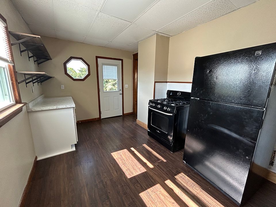 Nice quiet two bedroom upper! Huge backyard and plenty of off street parking available! Kitchen was recently updated and features new cabinetry and countertops. Refrigerator and stove included. Beautiful hardwood floors and all freshly painted! Two spacious bedrooms. Large front porch. Basement has washer and dryer hookups. This apartment is clean and ready for move in!