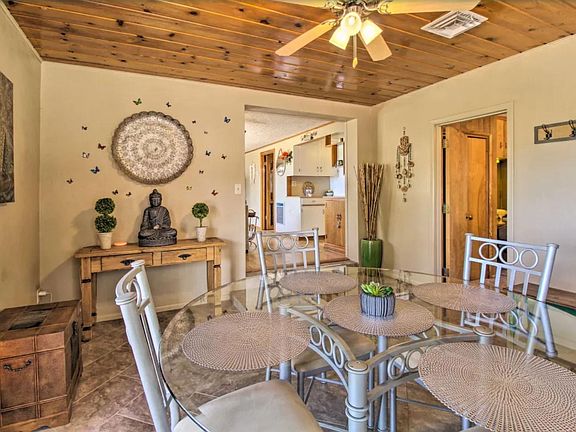This 2-bedroom, 2-bath home offers a cozy interior and a peaceful outdoor space with a large covered patio and great views. This property's location is ideal, offering quick access to main street while still being secluded. Watch the sunrise from the porch with your morning coffee then have a BBQ on the grill. Bring your off-roading toys, pets, trucks, and trailers. Renter pays utilities