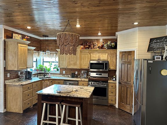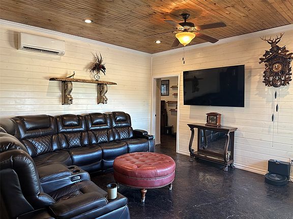 New on the market is a beautifully constructed barndominium on 12 acres in the desirable Early School District. The interior is truly impressive, featuring wood walls and ceilings downstairs paired with stunning stamped and stained concrete floors, while the upstairs showcases wood walls, wood floors, and unique tin ceilings. The primary bedroom and bathroom are conveniently located on the main level, and the versatile upstairs space can serve as an additional bedroom, large game room, or entertainment area with plenty of room for beds, furniture, and hosting gatherings. Heating and Air conditioning is from 6 Mini Splits located through out the house, and water heater is on demand, which all helps to keep lower, more efficient utility bills. Outside, the yard is well manicured and irrigated by the property's water well, with rural water also available at the road. The spacious garage and shop area includes two large drive-through doors and ample space for vehicles, equipment, or workshop projects. The land is well maintained and scattered with post oak, elm, and a few mesquite trees, offering a natural setting with a current agricultural exemption in place for lower taxes. To top it off, the property boasts exceptional hunting opportunities rarely found on tracts of this size. This outstanding property is move-in ready and waiting for someone to call it home.