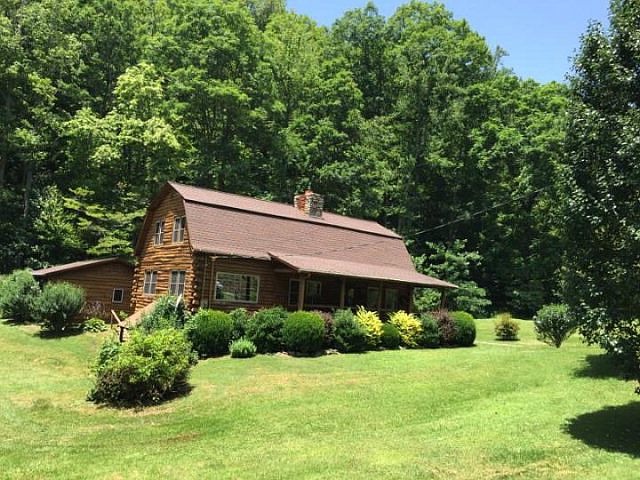 Great mountain log home in wonderful setting. 3/2 log with updated kitchen, large bedrooms, spacious family room with nice wood burning stove. Beautiful and flat laying yard area great for garden, small pasture, land and creek. Additional lot/land available. Seller offering $5,000 flooring allowance!! Also includes PIN#7632-22-6825 Jackson County Schools