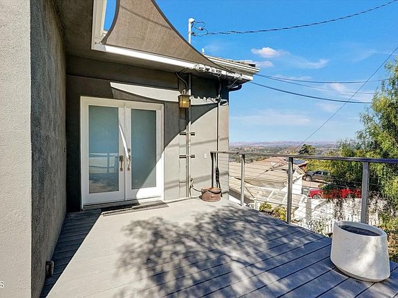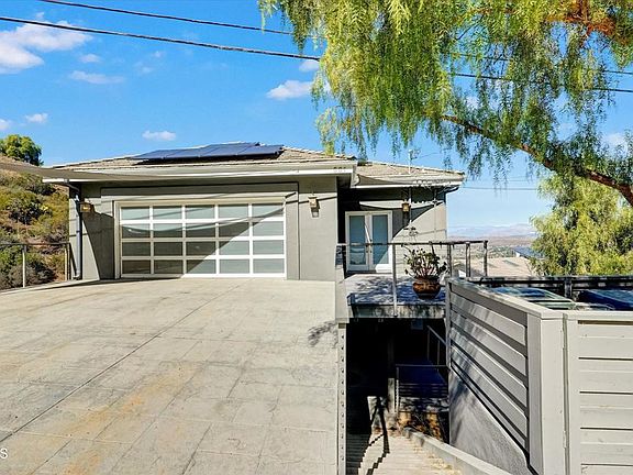 This luxurious 5-bed, 5-bath home offers gorgeous valley views from multiple vantage points. One bedroom features a private entrance, full bath, and side yard. Ideal for multi-generational living and/or ADU conversion. The main level offers an open-concept living-room and dining room with a chef's kitchen, which includes Thermador appliances, European cabinetry, an oversized Silestone waterfall island and fire place. Enjoy an approx. 800 sq. ft. deck with Jacuzzi, a large entertainment room with built-in surround sound, and refined finishes throughout. The oversized master bedroom inclues a private deck and fireplace. Additional highlights include paid solar, 2 tankless water heaters, electric blinds, Milgard windows, zoned Nest thermostats, abundant storage, and a dedicated laundry room. Situated on a private road with an open lot next door offers privacy and seclusion. Top of Line Construction Quality, estimated replacement cost over $2,000,000.00. This is a must see in person! Only 5 minutes to freeway, dining, and shopping. Approximate drive times to Santa Barbara: 50-60 min Los Angeles (Downtown): 45-55 min Burbank: 35-50 min Van Nuys: 30-40 min Woodland Hills: 25-35 min Granada Hills: 30-45 minBuyer to perform their own due diligence regarding permitting, zoning, and ADU requirements. Seller and broker make no representations or warranties regarding the permitting requirements or feasibility of converting any portion of the property into an ADU and total square footage.