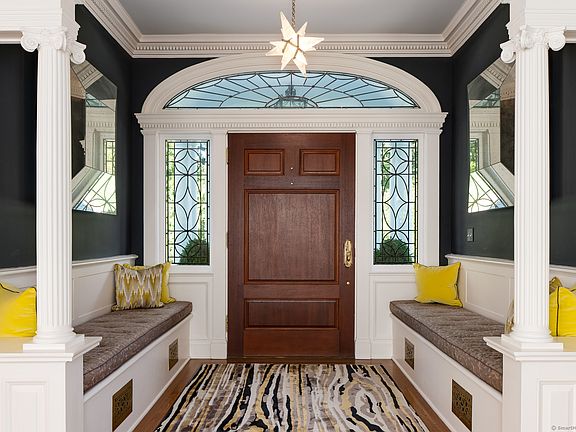 Set on one of New Canaan's highest elevations, this iconic country estate offers a rare combination of architectural distinction, modern functionality, and understated luxury. Exquisitely restored by renowned architects Wadia Associates, the 14-room manor balances timeless design with contemporary ease. A grand reception hall introduces a sequence of formal rooms with soaring ceilings, curved glass windows, lacquered finishes, and classic French doors that open seamlessly to the outdoors. At the heart of the home, the Smallbone of Devizes kitchen with walls of Calacatta marble and top-tier appliances flows seamlessly into a light-filled family room overlooking four stunning sculpted acres. The primary wing, is a private retreat of more than 1,100 square feet, featuring a spa-style bath and expansive dressing room. Four additional en-suite bedrooms graciously complete the second floor with an additional spacious & sunny room/office on the third floor. Thoughtfully equipped as a smart home, the property places technology and convenience at your fingertips. Outside, landscaped grounds unfold with an expansive terrace, covered porch, heated pool, and cabana-an environment designed equally for quiet weekends or refined entertaining. Every detail reflects a commitment to craftsmanship and lifestyle, creating a residence that is both stately and livable. This is New Canaan at its most elevated-a rare opportunity to own a property where design, privacy, and comfort converge.