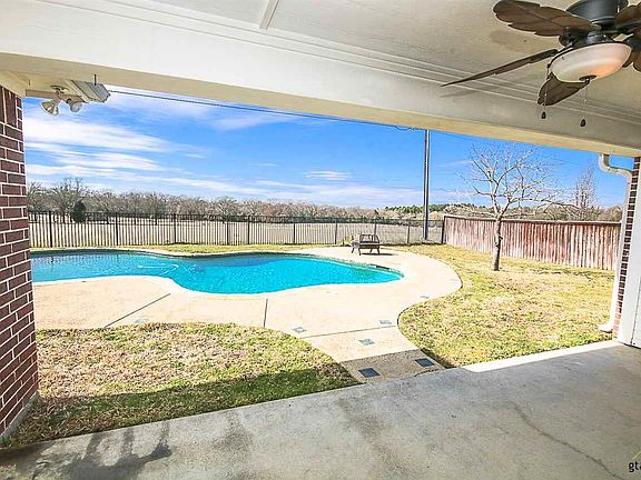 Well maintained home with in ground saltwater pool! This home offers 3 bedrooms, 2 full baths & a 2 car garage with extra storage. The living area has a wall of windows looking out over the pool and open land behind the house. Wood burning fireplace with gas starter, tile flooring flows into the breakfast/dining area and well equipped kitchen. Stainless steel appliances and an abundance of cabinets and countertops. The master bedroom is split and has pretty hardwood floors. The master bathroom has a garden tub, 2 walk in closets and a double vanity. Across the home are the other 2 bedrooms and full bath. Surround sound speakers both inside and outside of the home. In the backyard is a covered patio, beautiful in ground saltwater pool, wrought iron fencing across the back so you can enjoy the open view behind the house and a storage building for all of your outside tools and lawnmower. Automatic sprinkler system and tinted windows. Conveniently located to Tyler Pounds Field.