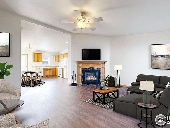 This charming ranch-style 1/2 duplex offers an open floorplan with three bedrooms, two full bathrooms, a large open kitchen and a private fenced backyard.  With natural light throughout, this home is bright and airy. Stay cozy during chilly evenings beside the gas fireplace in the spacious living area. The eat-in-kitchen is the heart of the home, has plenty of counter space and is open to the living room, both with vaulted ceiliings. With a convenient oversized two-car garage, storage is plentiful. Outside, the fenced backyard offers privacy and space for outdoor activities. Located in a desirable neighborhood, this home provides easy access to amenities and commuter routes. This home is convenient to Centennial Park, Thompson Rec Center and the Milliken Waterworks Pool.