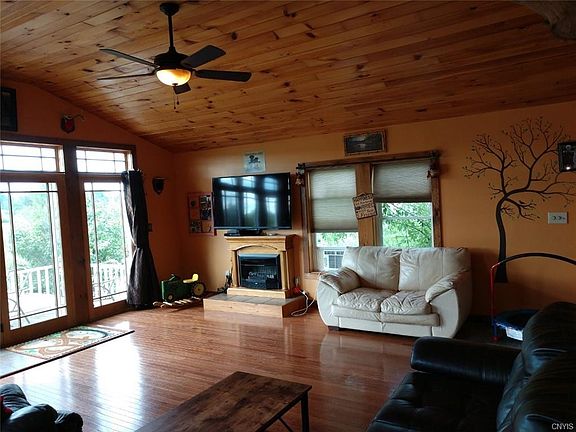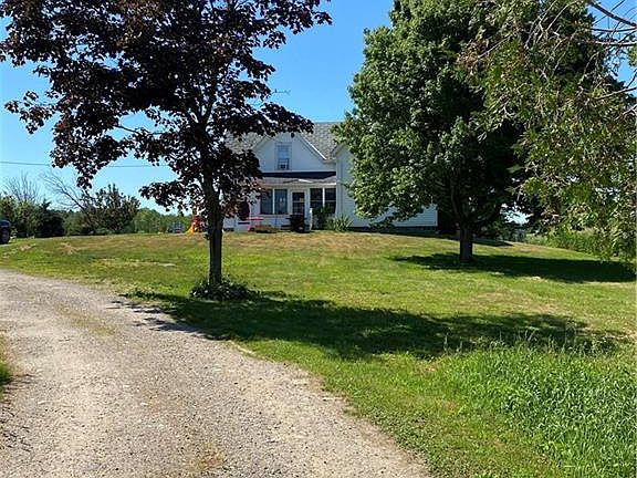 3 BR 1 Bath Classic style farmhouse situated on 66 acres with 1 large barn located next to the home, a smaller structure great for storage and out building with wood boiler. Sitting a nice distance off the road, great for anyone with kids and pets, the home has just under 2000 square feet of living space with a formal dining room with original hardwood floors that follow thru to the eat in kitchen. Large living room off the dining which can also be used as a bedroom and has a door to the enclosed front porch area. Main floor full bath with new vanity and washer dryer hookups. Huge bonus room/family room added in 2006 has cathedral pine ceilings, French doors to a large back deck and a gas fireplace great to use in the chilly months. The second floor you will find a large landing area which is a great play area or office, and 2 nice size bedrooms. Vinyl siding, replacement windows newer roof and outdoor wood boiler makes this home easy to maintain and the 66 acres that comes with it, is your private getaway for hunting, recreation or anything else you could imagine.