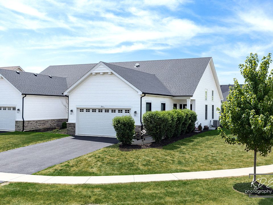 BEAUITFUL DEERPATH CREEK VILLA W FULL FINISHED BASEMENT & FULL BATH! Foyer opens to great room w volume ceiling, an open concept living space w plantation shutters! The beautiful kitchen boasts white Brakur cabinets, white quartz counter tops, upgraded lighting and stainless steel appliances. This sprawling ranch offers a primary bedroom suite w volume tray ceiling, full walk-in closet and spa-like bath w double sink, full shower; a large second bedroom, stylish full bath, plus a den/third bedroom option. The second floor loft offers additional living space options - bedroom, office, workout room - you decide! Don't miss the full finished basement w a third bedroom, full bath and an open finished space for a game room, second family room - you decide! Corner lot provides great outdoor space, invisible fence for your pets, concrete patio backs to nature preserve, home has great curb appeal! Prime Oswego location, minutes from shopping dining, top-rated schools, trails and scenic parks! WELCOME HOME!