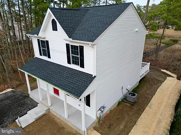 Affordable new construction located on the headwaters of No Name Creek. Perfect for the kayak or paddle board enthusiast. Incredibly peaceful and private natural setting with woods on both sides and natural wetlands and creek behind offering shallow draft boat access and wildlife viewing. Large kitchen with granite countertops and stainless-steel appliances. Home comes complete with refrigerator, washer, and dryer. Composite deck with vinyl rails overlooking the creek is great for entertaining. Lower level is completed with half bathroom. Upstairs you will find the primary bedroom and bathroom including an oversized walk-in closet overlooking the water. Bedrooms 2 and 3 share the hall bath. Front porch is just waiting for your chairs to welcome everyone home. It is not the biggest home, or the best waterfront money can buy, but you won't find any alternative for a new home on Kent Island, offering this privacy or any waterfront, anywhere near this price range. Quality construction features like flash coat closed cell foam wall and crawl space insulation, concrete crawl space floor, LVP flooring, architectural shingles, Advantech subfloor, efficient HVAC, and more combine to assure low utility bills. $5,000 in closing assistance offered with preferred lender and title company.