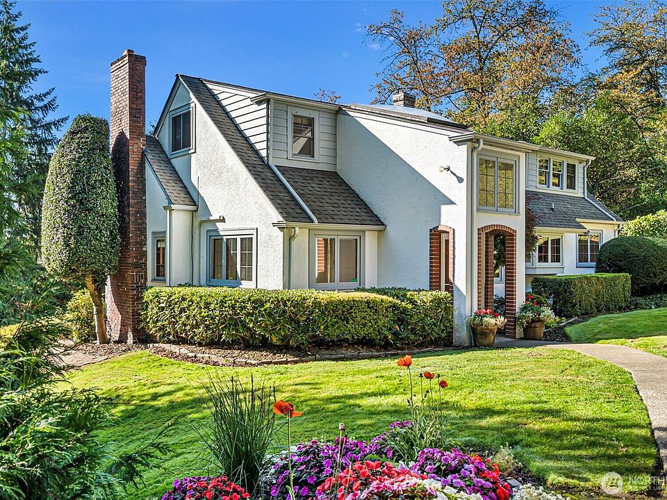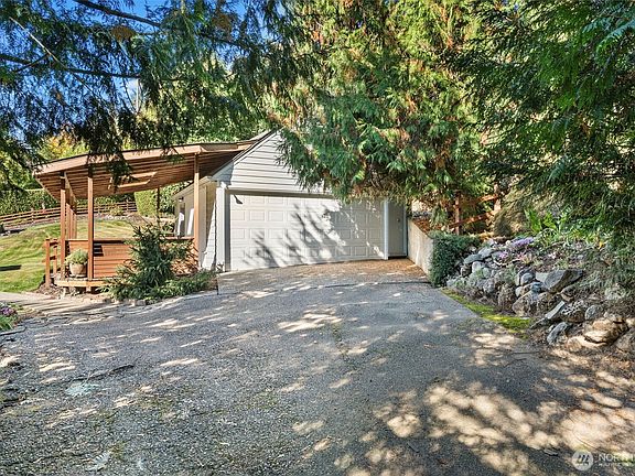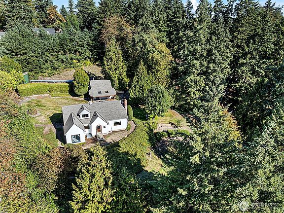Nicely sited on a ridge above the quaint town of Sumner, this 1930s Traditional features leaded glass windows, unspoiled original woodwork, hardwood and fir floors under the carpets, a newer roof and an updated electrical panel. The entry level includes a gracious formal living room with a wood burning fireplace, a family room off the kitchen, a bedroom, a full bathroom and an office that could easily be used as a 4th bedroom. Two spacious bedrooms and a half bathroom are located upstairs. The unfinished basement with laundry offers an opportunity for expansion. The property also includes a detached two car garage with an approximately 300 SF bonus room above, a covered deck, terraced gardens, a large shed and parking for an RV.