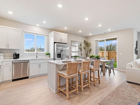 The Elmhurst offers a contemporary open-concept design that joins the main living spaces & the rear patio. Kitchen boasts quartz counter tops, island, pantry, & S/S appliances. All 3 bedrooms are sizeable with the primary suite bathroom featuring a deep soaking tub, dual vanity, & large walk-in closet. Home comes complete with f/p, front & backyard landscaping w/UG sprinklers, backyard fencing, S/S Frig, W&D, Window Blinds, AC unit & tankless water heater. Complete August 2025.