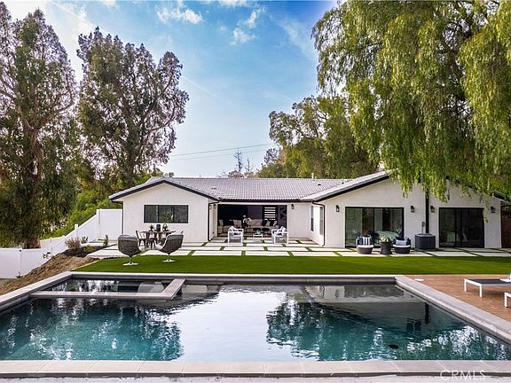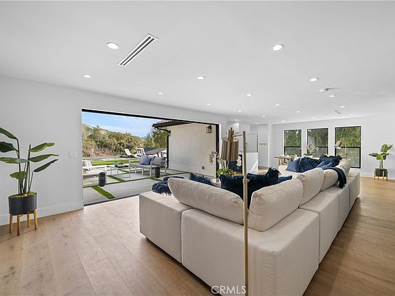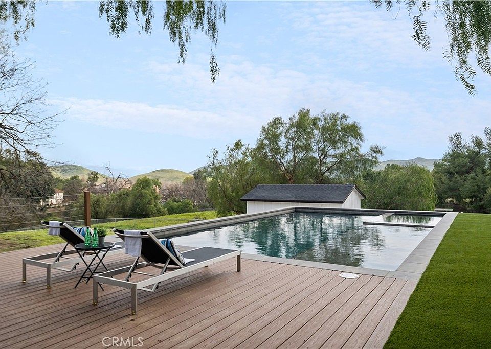 Immerse yourself in pure luxury in this open-concept, contemporary estate Stunning private Old Agoura modern ranch. Live the ultimate indoor/outdoor lifestyle, in this single story, 5 bedrooms, 4.5 bathrooms smart home, on nearly one acre lot. Step inside to find an open floor plan featuring wide-plank flooring, and pocket doors opening to the grounds and stunning views. The chef’s kitchen includes a seated island, Jennair fridge, monogram appliances, and quartz countertops. The primary suite offers a walk-in closet, luxurious bathroom, and large sliding doors letting in the view and opening to the yard and pool. Two more bedrooms with private bathrooms, and two additional spacious bedrooms share a bath. Unwind and host guests on the outdoor patio and deck, and enjoy the smart pool & spa equipped with light features. Located just minutes from fine dining, excellent schools, scenic hiking, and horse trails. Don't miss out on this very special property !