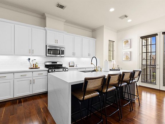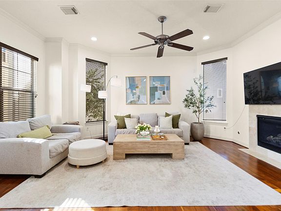 Freshly updated in 2024 with a new A/C unit & a 2021 water heater, this home blends thoughtful upgrades with lifestyle-focused design. Enjoy peace of mind knowing recent stucco repairs & interior paint add both durability & style, while your private turfed yard offers low-maintenance greenery perfect for pets or gatherings. In the heart of desirable Cottage Grove, you’re just a 5-minute walk away from popular spots like Down the Street Bar & Grill, with Cottage Grove Park’s playgrounds, sports courts & open fields nearby for recreation. Quick access to major freeways connects you to Houston’s best shopping, dining & culture. Inside, your open-concept second floor invites seamless entertaining, anchored by a remodeled kitchen showcasing a quartzite waterfall island, while a gas log fireplace adds cozy elegance. Retreat upstairs to a massive guest suite with space for a king bed plus furnishings, offering flexibility for guests, office or media—all in a layout built for modern living.